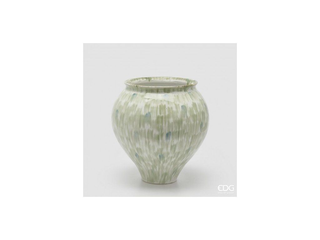 Stylová porcelánová váza, která osvěží každý interiér. Výška 36 cm, průměr 35 cm. Bílo-zelený odstín.