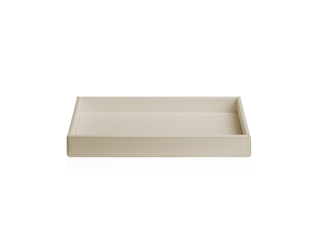Designový multifunkční box L v odstínu béžová. Je možné ho využít jako odkládací organizér v koupelně na kosmetické potřeby nebo jako kancelářský organizér. Materiál imitace kůže. Výška 3,5 cm, délka 28 cm, šířka 16 cm.