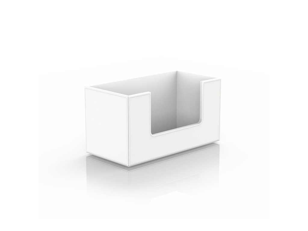 Designový box v odstínu bílá. Je možné ho použít v koupelně jako úložný box pro papírové ručníky nebo jako multifunkční box v kanceláři. Materiál imitace kůže. Výška 14,5 cm, délka 26,6 cm, šířka 13 cm.