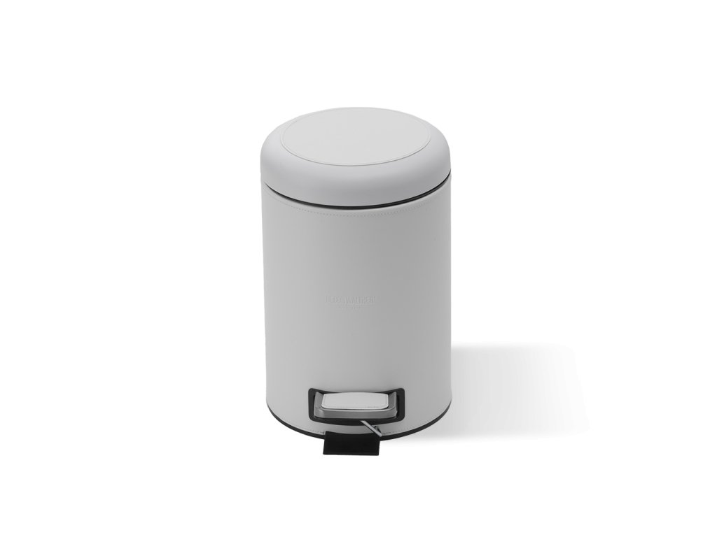 Designový koš na odpadky v odstínu bílá. Průměr 17 cm, výška 26 cm, délka 24 cm. Materiál imitace kůže.