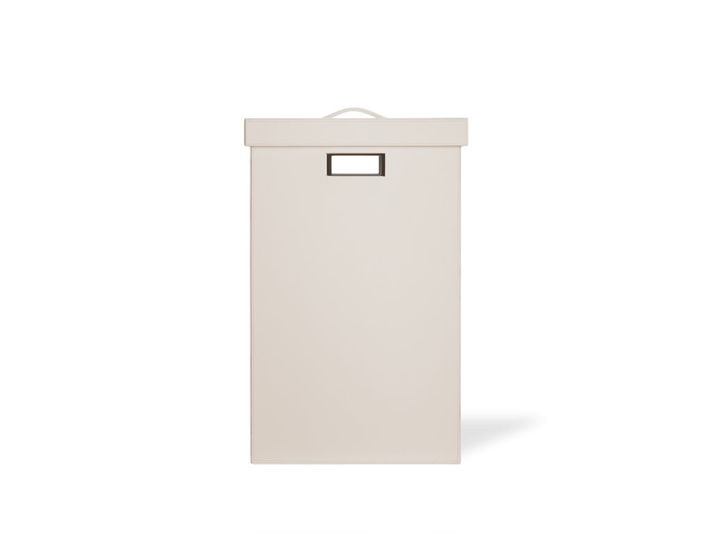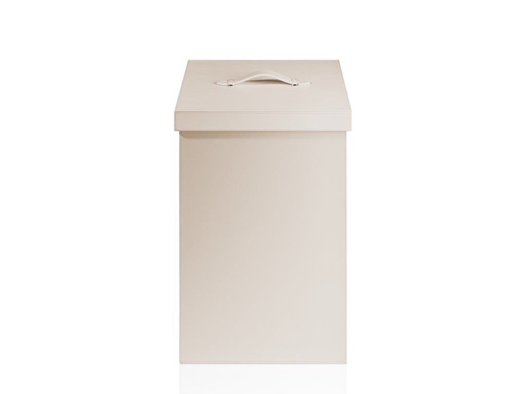 Designový koš na prádlo s poklopem v odstínu béžová. Materiál imitace kůže. Výška 58,5 cm, délka37 cm, šířka 37 cm.