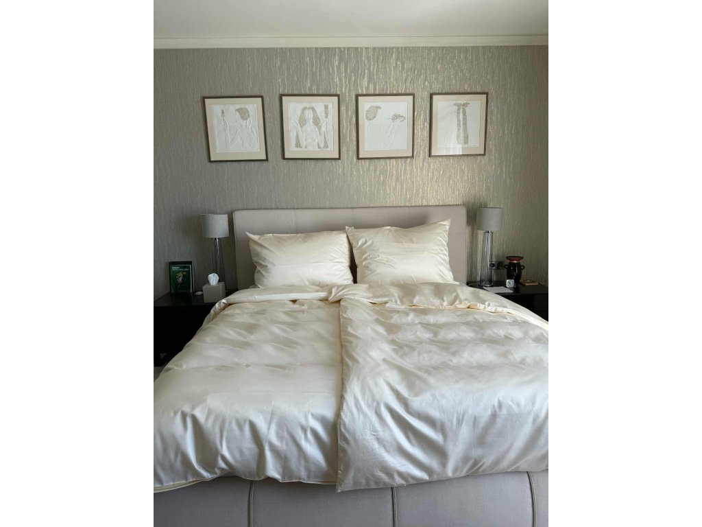 Saténové povlečení v odstínu šampaň je luxusním doplňkem pro Vaši ložnici.