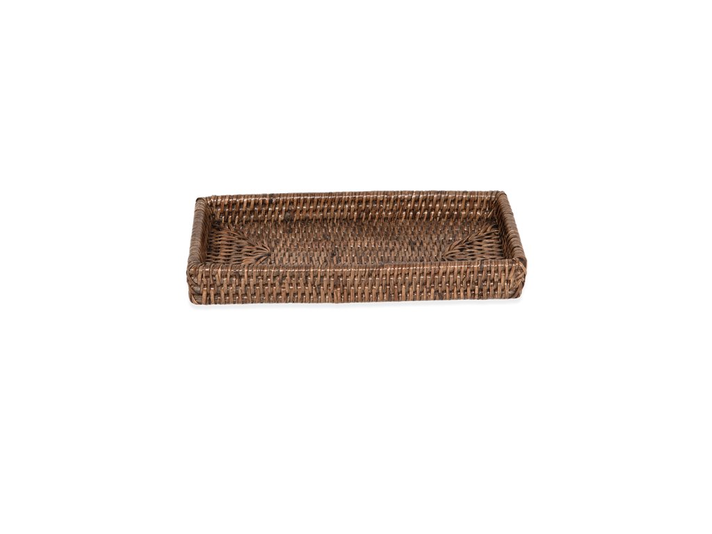 Ratanový podnos v tmavém odstínu. Materiál ratan tmavý. Výška 2,5 cm, délka23,5 cm, šířka 11,5 cm.