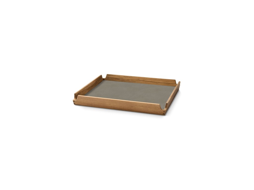 Stylový podnos z teakového dřeva s vložkou z recyklované kůže v odstínu FLINT GREY.