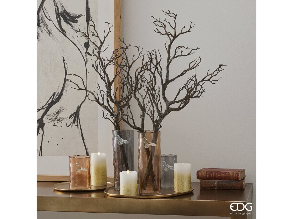 Krásná skleněná váza s ptáček v šedém odstínu. Výška 27, průměr 10 cm.