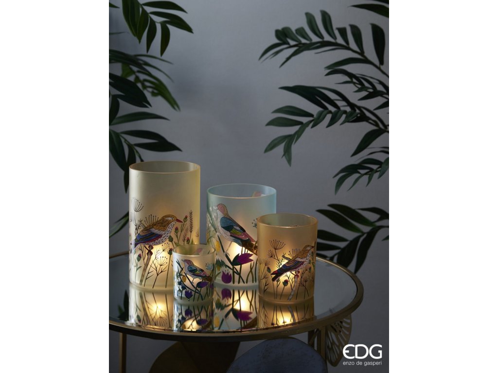 Skleněný svícen s motivem ptáčků rozjasní váš interiér.