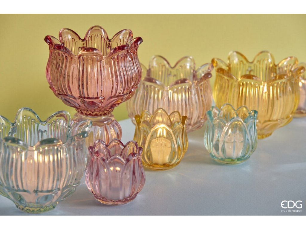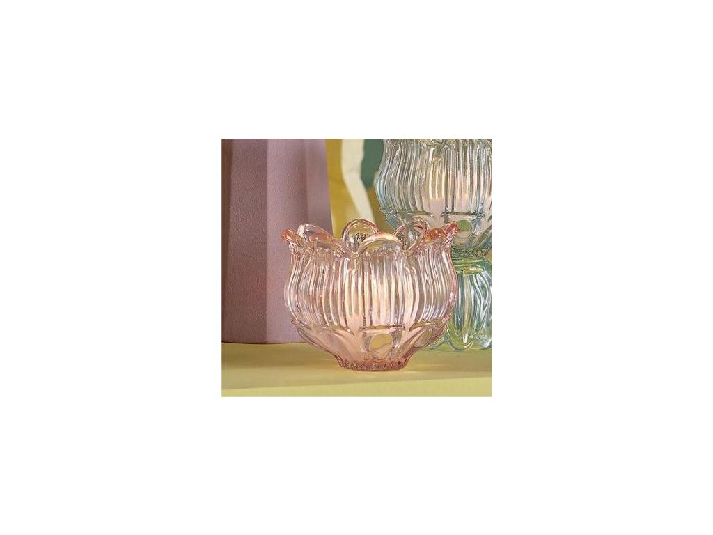 Jarní svícen TULIP v růžovém odstínu. Výška 10 cm, průměr 12,5 cm.