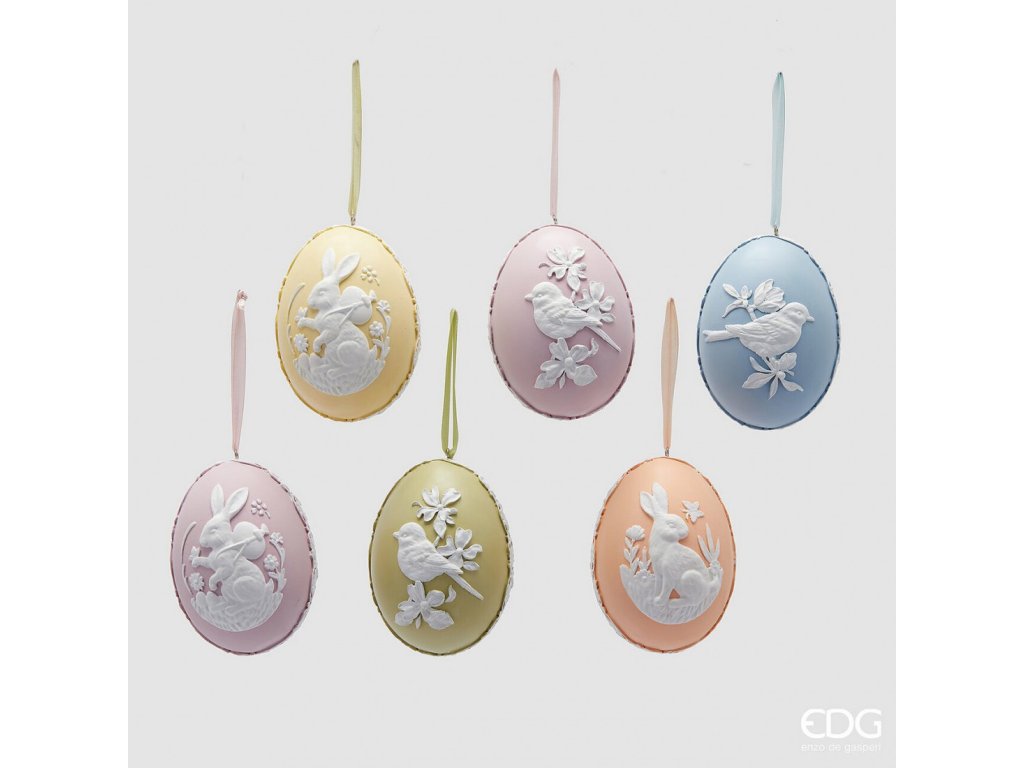 Velikonoční vajíčko v jemném růžovém odstínu s reliéfem zajíčka.